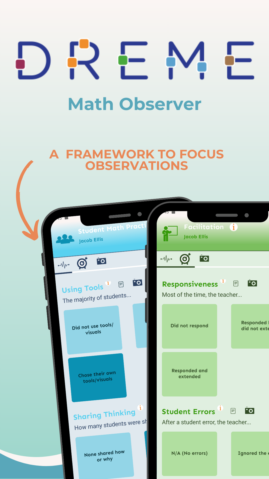 DREME Math Observer is easy to use across your personal mobile device or on a tablet, so you can easily drop in to see how a math lesson unfolds and keep track of everything in one convenient place.