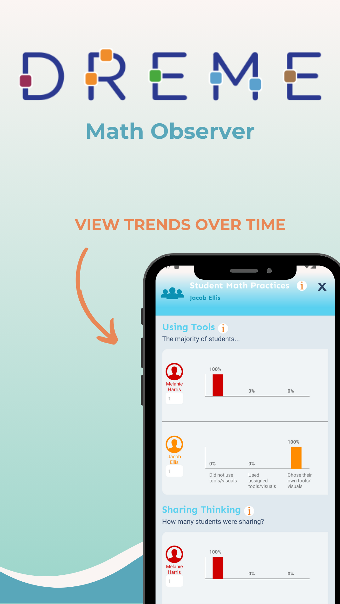 DREME Math Observer is easy to use across your personal mobile device or on a tablet, so you can easily drop in to see how a math lesson unfolds and keep track of everything in one convenient place.