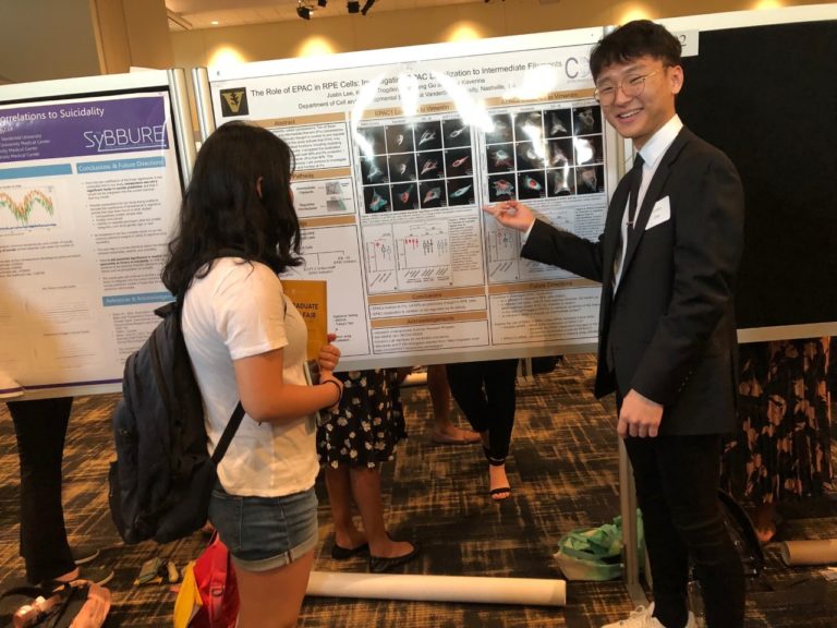 Justin presents his research from the Kaverina lab at the undergrad science fair. Good job!