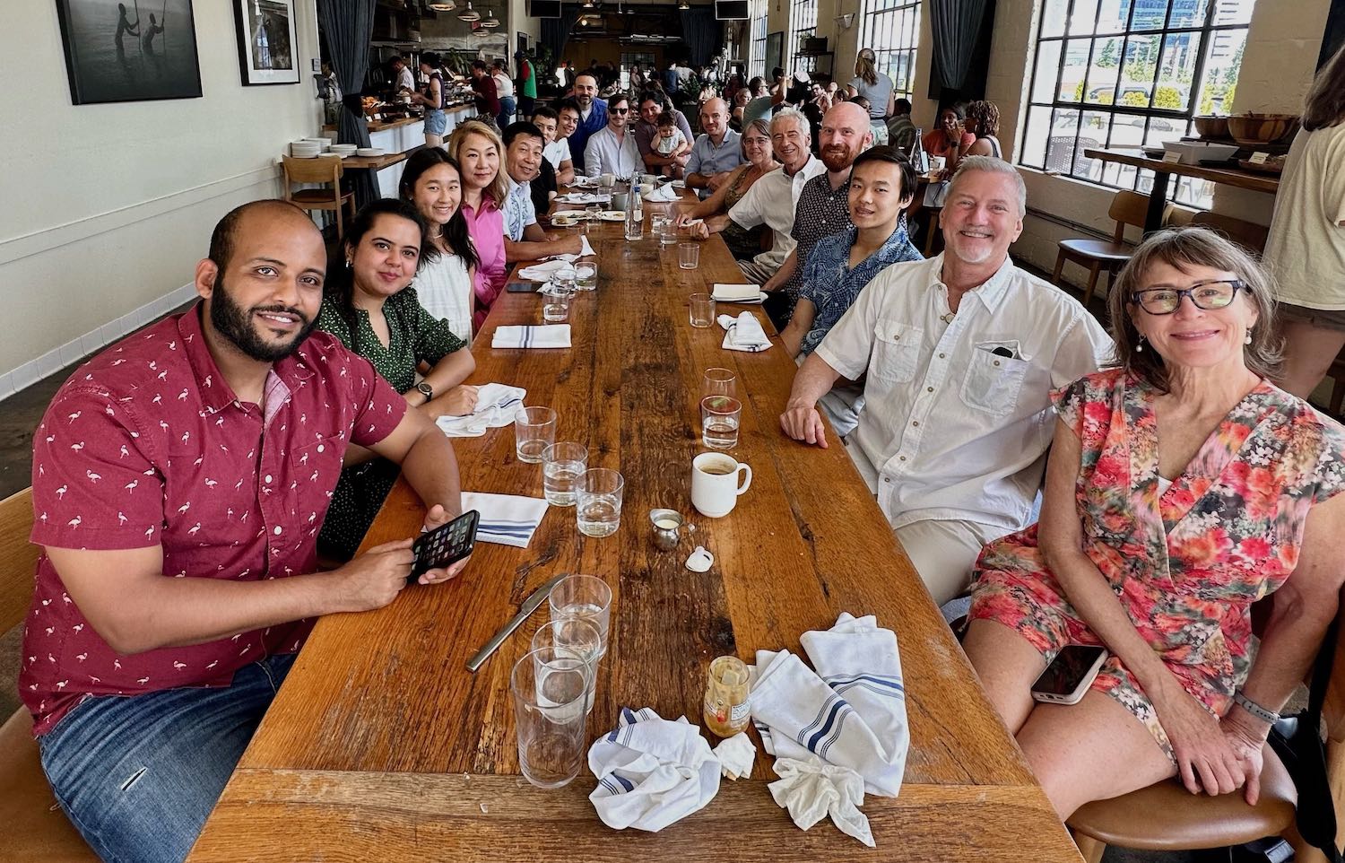August 2023 – Brunch for the lab at Adele’s restaurant on Sunday morning, kindly hosted by Jason’s parents – Jason is leaving for MIT as an undergrad next week. We will all miss his passion for science!