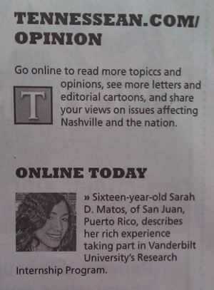 Vanderbilt’s Research Internship Program Student Sarah Matos Publishes Essay in The Tennessean