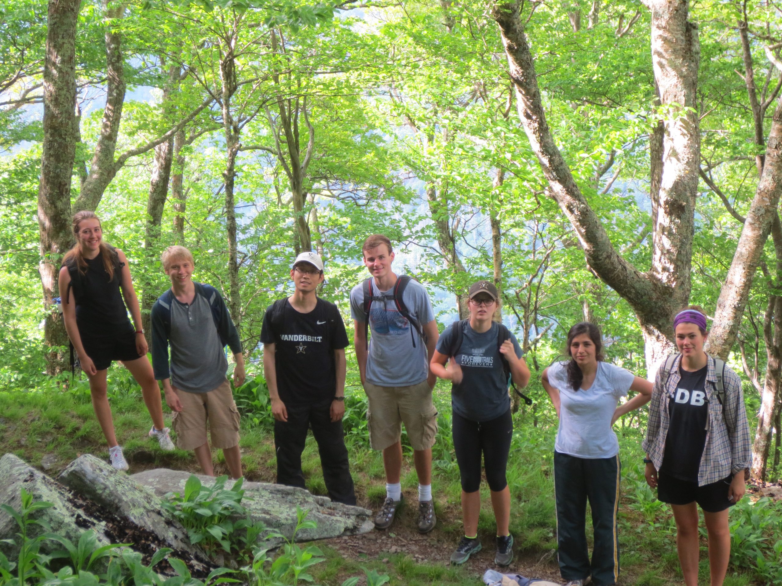 May 28, 2015: The Miller lab hiked the Rainbow Falls trail for an overnight stay at the Mt Leconte Lodge.
