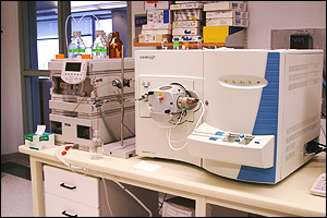 In addition to the mass spectrometers, the MS Core has a Hewlett-Packard 1090 LC that is used for normal phase LC analysis of lipids by silver ion coordination-ion spray MS.