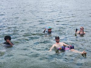 Kimi teaching everyone the best way to float A good day for swimming Bryant and Can before the wipeout Showing everybody how it’s done