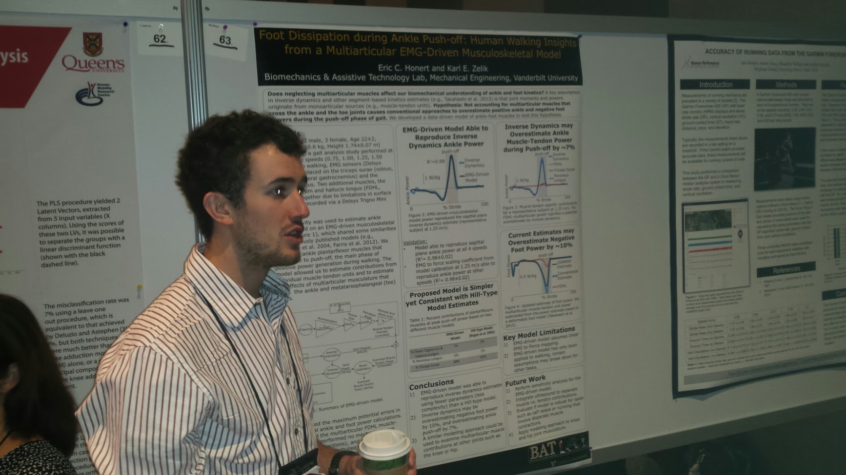 Eric Honert presented results from an EMG-driven musculoskeletal model, aimed at improving our understanding of ankle-foot function. Poster